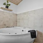 Lf21517-Spottrup-Normannsvej-17 Villa comes with a bathroom with a hot tub, a shower, and a washing machine. There are dryers for guests' comfort.